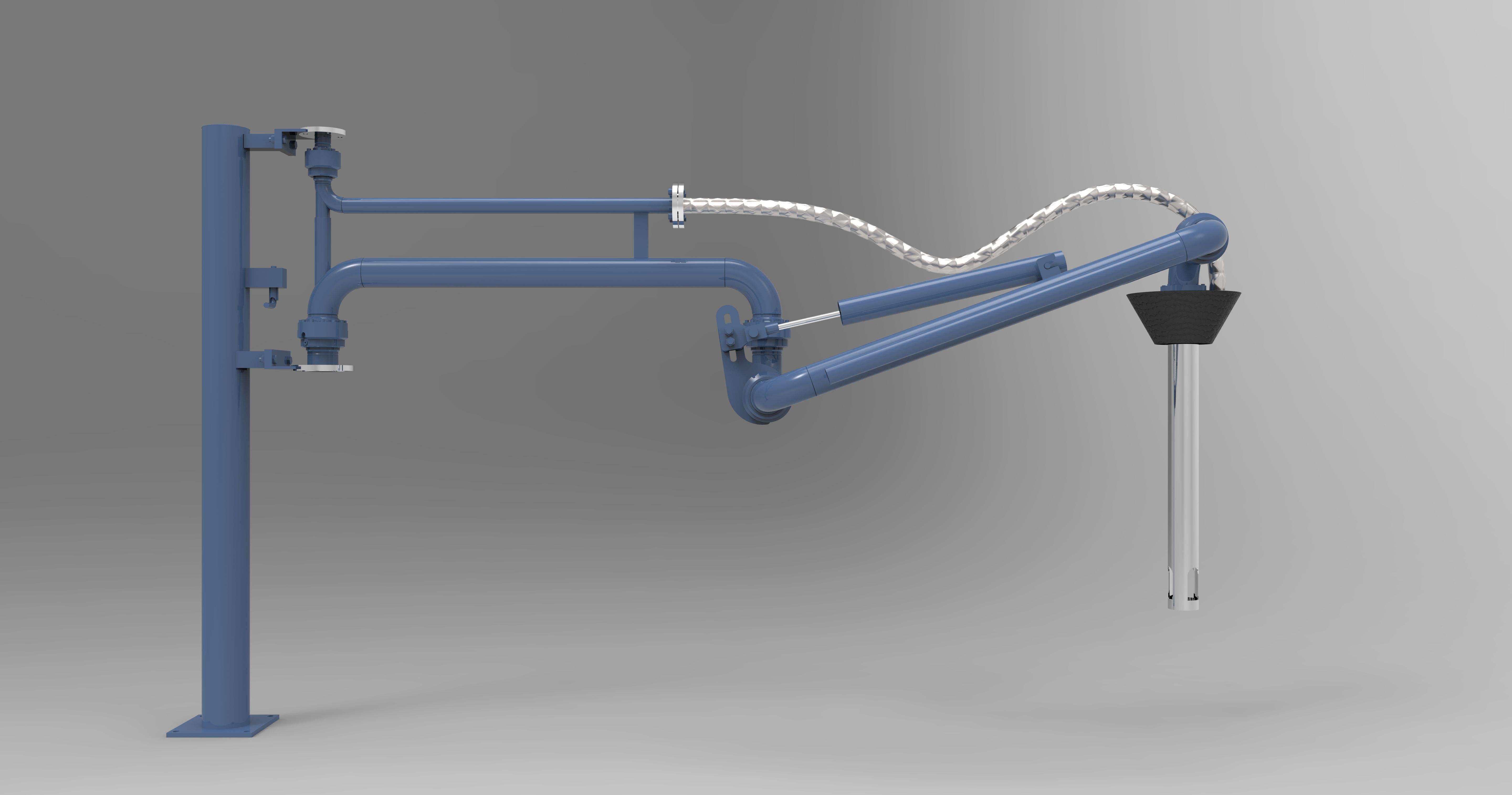 火車鶴管要求鶴管具有足夠的長度及移動空間(高度、水平距離),以保證實(shí)現(xiàn)列車進(jìn)入裝卸棧臺后達(dá)到不摘鉤對位、浸沒式裝油和卸油作業(yè)的要求,并滿足安全要求。火車鶴管需要?dú)饷苄院谩⑤p便靈活、操作方便。